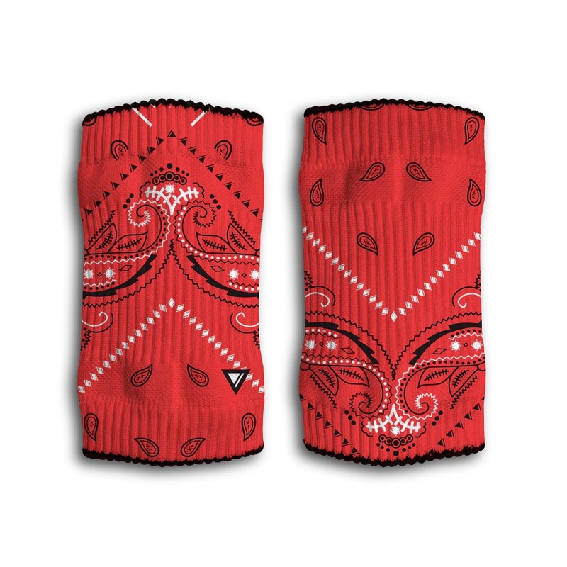 Protège poignets de type Wristband long en coton absorbant modèle PAISLEY rouges de chez LITHE.