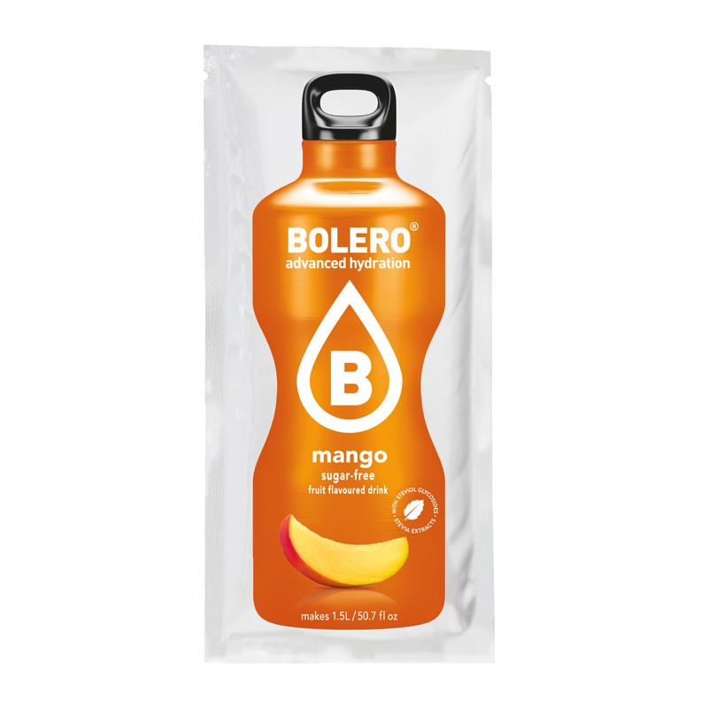 Boisson hydratante pour sportif, saveur MANGUE sans additif et faible en calories proposé par BOLERO.