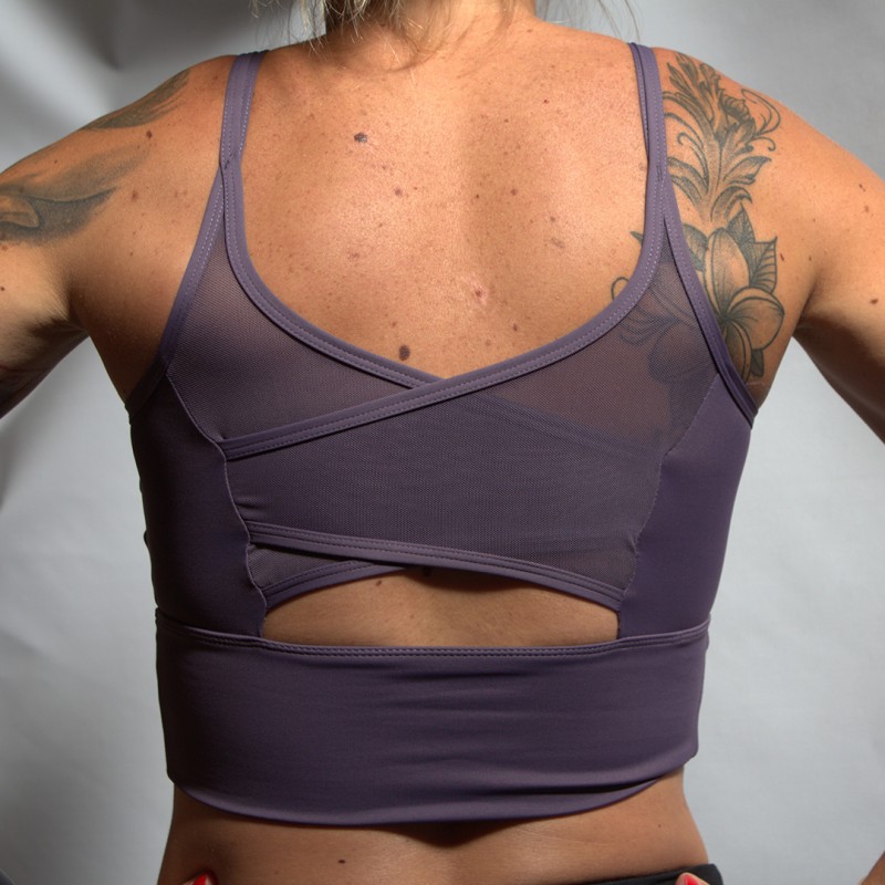 Ce brassière violette NANCY de chez VERY BAD WOD coupe possédant de la mesh à l'avant et l'arrière est le choix des athlètes cherchant le confort et le style.