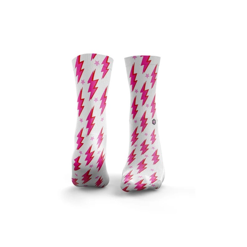 Chaussettes d'entraînement blanches modèle imprimé LIGHTNING BOLTS PINK de chez HEXXEE SOCKS.