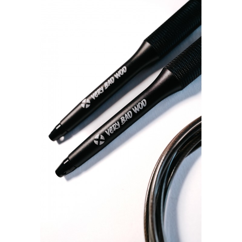La nouvelle Corde à sauter VELOCITY 2.0 noire pour Athlète de niveau intermédiaire / avancé proposée par VERY BAD WOD est idéal pour les DU, voir les T.U.