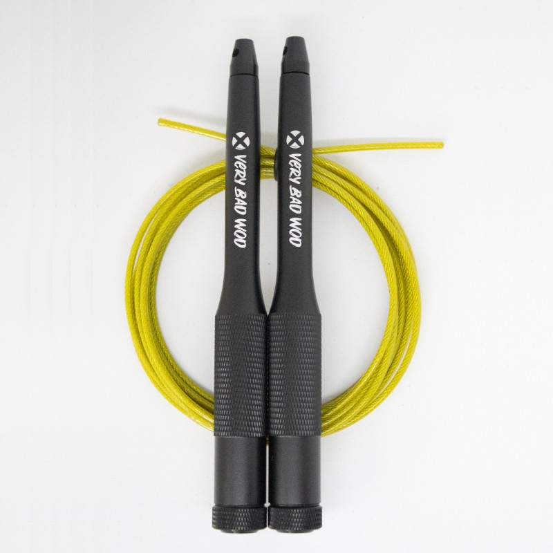 jauneLa nouvelle Corde à sauter VELOCITY 2.0 jaune pour Athlète de niveau intermédiaire / avancé proposée par VERY BAD WOD est idéal pour les DU, voir les T.U.