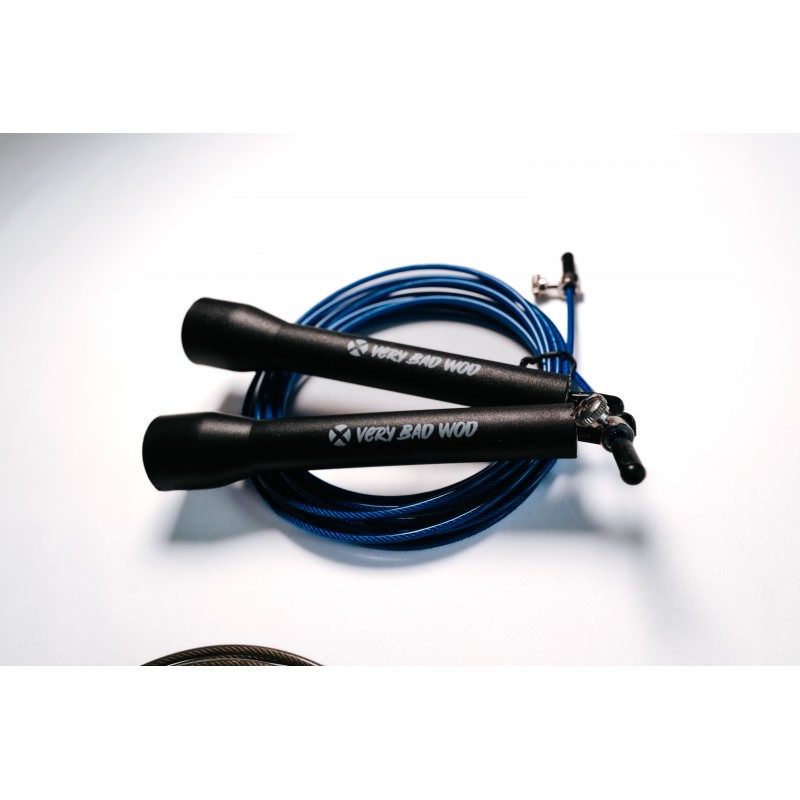 Câble de remplacement corde à sauter bleu Very Bad Wod, 2.5 mm d'épaisseur, 3 mètres de longueur. Idéal pour toutes les cordes à sauter CrossFit® compatibles. Parfait pour les WODs rapides, les doubles unders et l'entraînement intensif. Câble ajustable, résistant, prêt à performer.