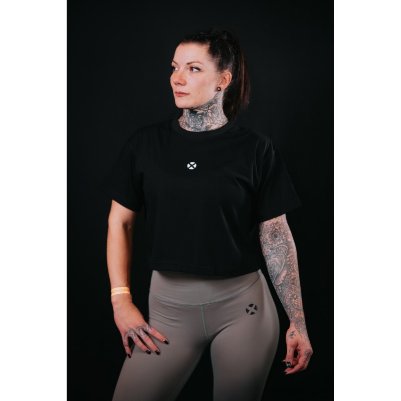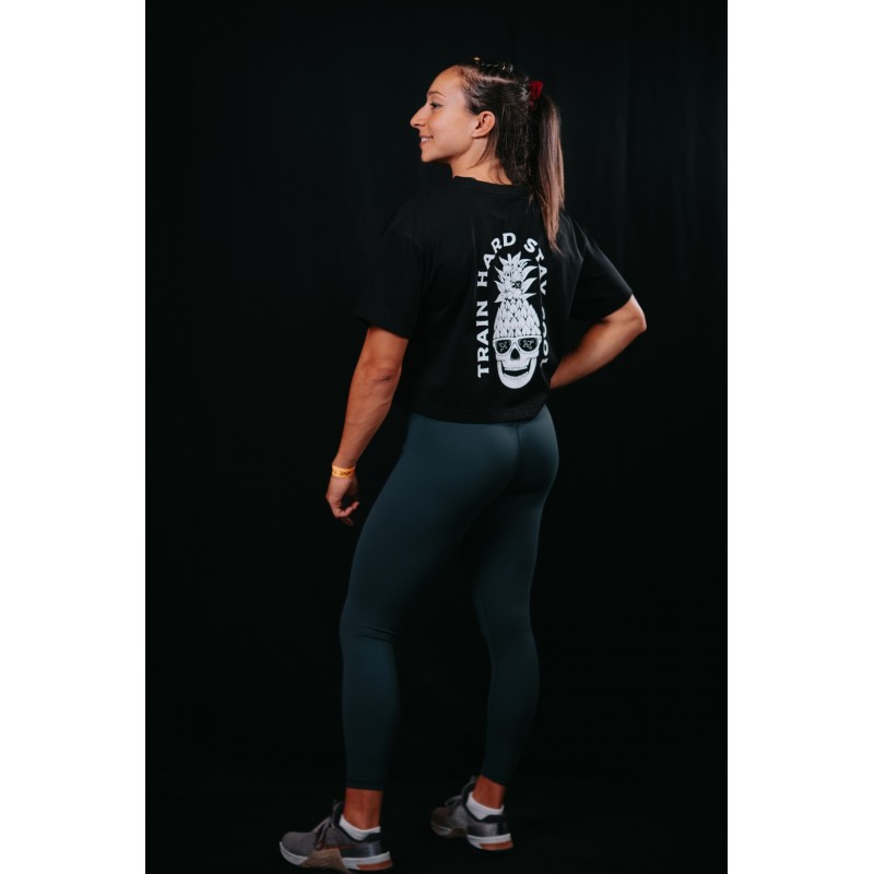 Crop Top coupe oversize de couleur noir modèle TRAIN HARD STAY COOL.