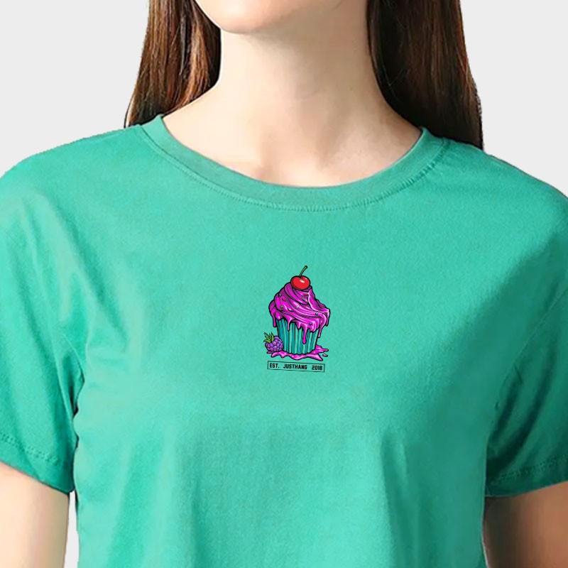 Le crop t-shirt Vert Menthe CUPCAKE est idéal pour les sportives cherchant le confort et le style. Design Vert Menthe by Justhang.