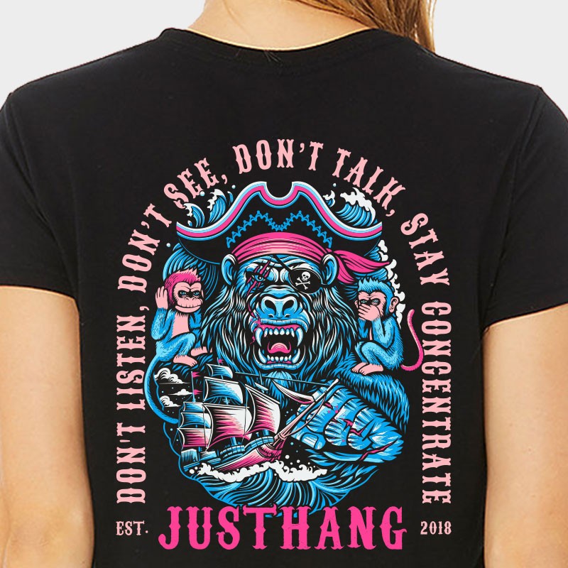 Le crop top sport femme JUSTHANG The Monkey of Wisdom n'est pas qu'un simple t-shirt. Il est une véritable déclaration d'attitude ! Son imprimé exclusif, représentant trois singes dans une mer agitée, symbolise la concentration et la maîtrise de soi, des qualités essentielles pour exceller en CrossFit®, HYROX et autres disciplines intenses. Ce design unique rappelle que, face aux défis, la clé est de garder son focus et de rester dans sa zone de performance.