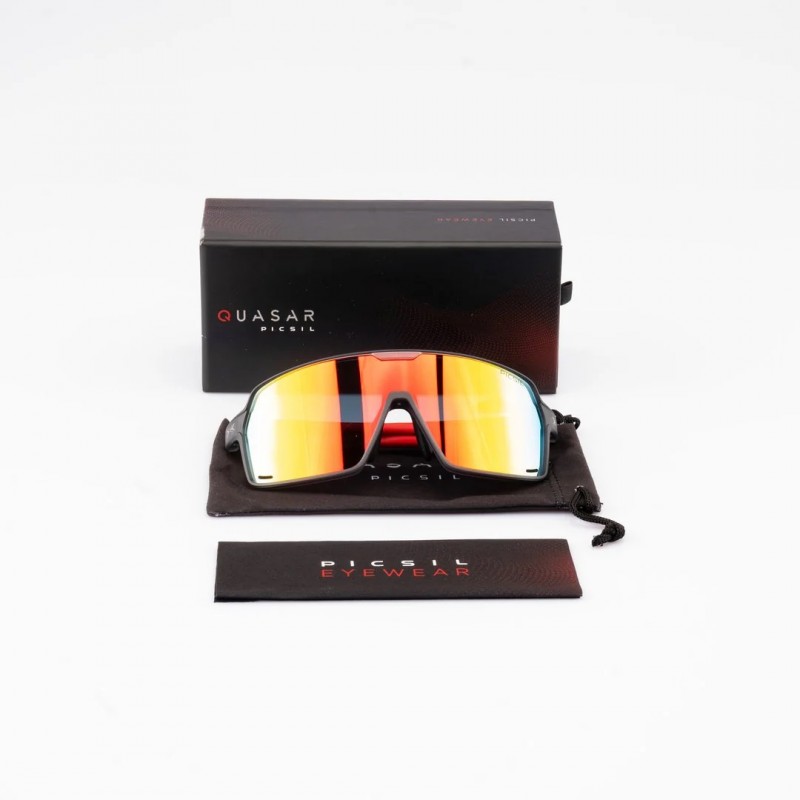 Paire de lunettes de soleil polarisées de la marque PICSIL CLOTHES, modèle CRIMSON QUASAR SPORTS avec branches noires et jaunes.