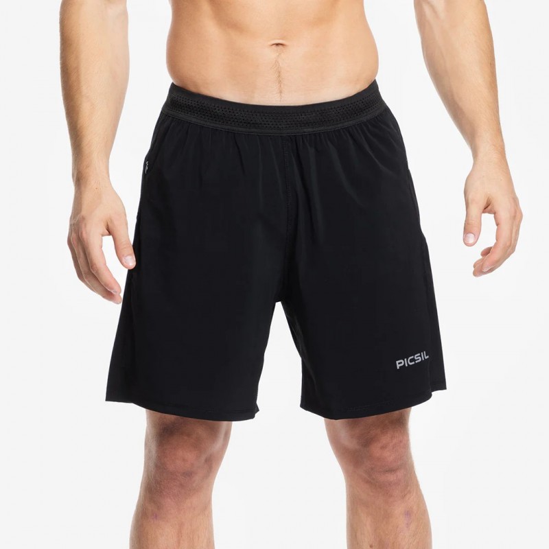 Ce short vous offre un confort et du style dans vos entraînements, grâce à son tissu italien naturel et élastique qui s'adapte à tous les types d'exercices. Le nom de la marque PICSIL se trouve au niveau bas du côté gauche. Il possède un élastique à la taille avec lacets qui vous permet un parfait maintien sans vous géner dans vos mouvements. Sa matière sèche rapidement et vous pourrez même piquer un plongeon dans l'eau avec.