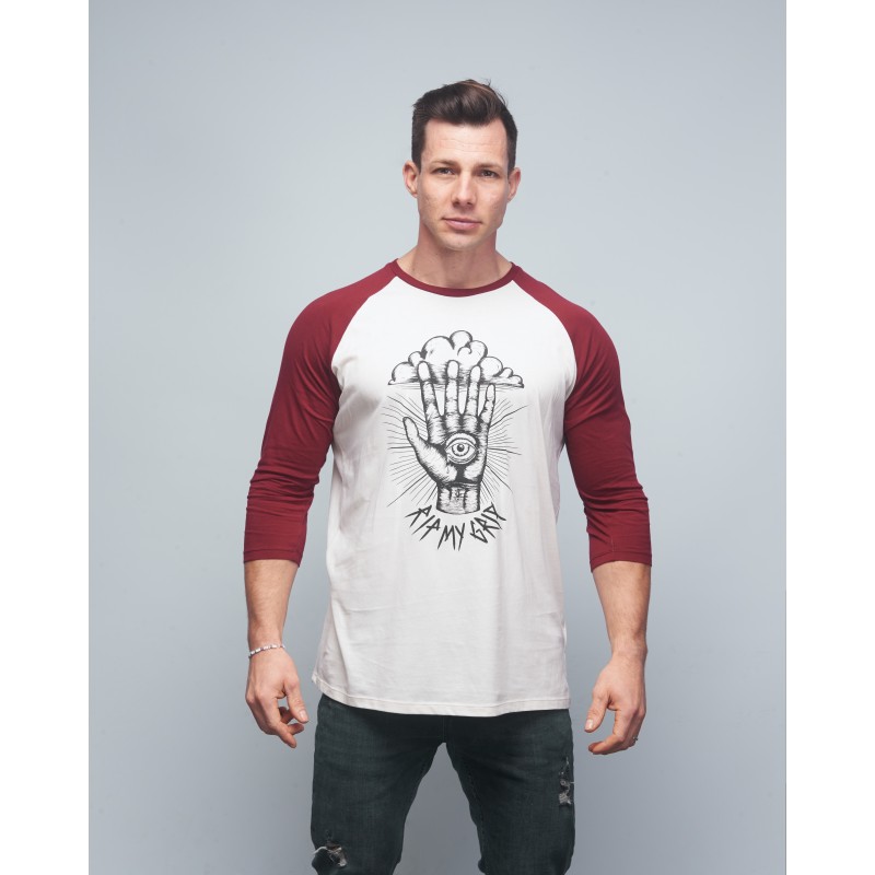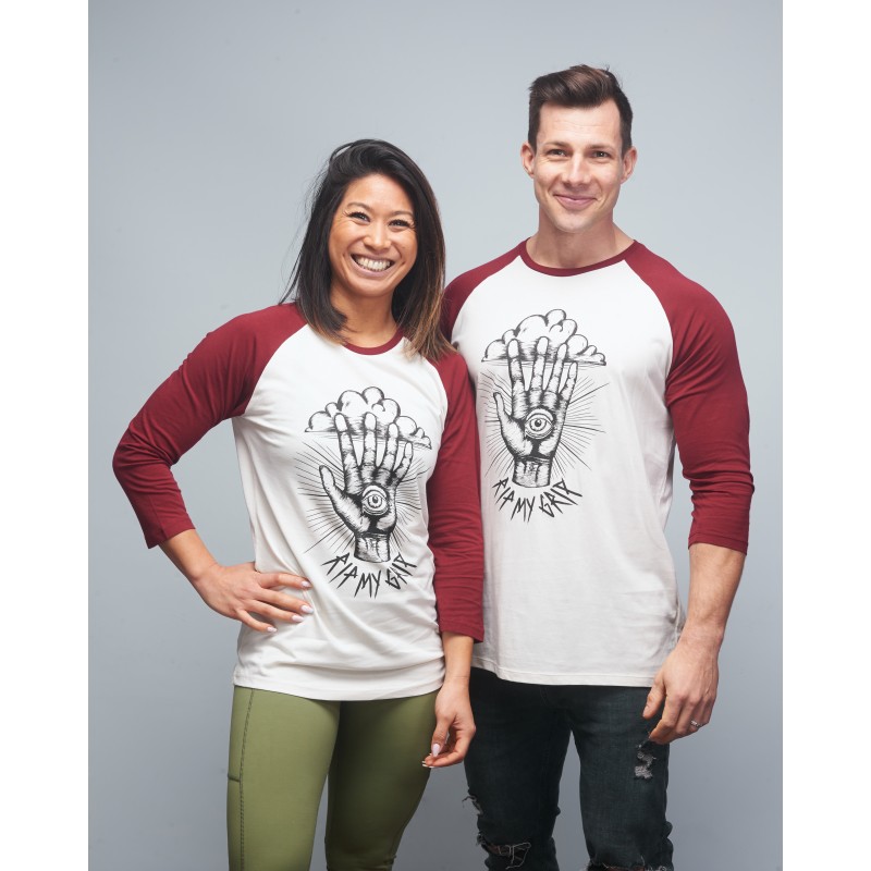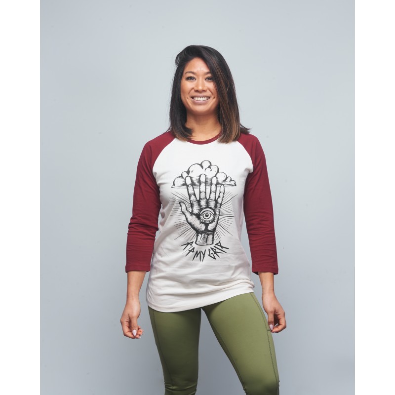 Baseball T-shirt unisexe bordeaux issu de la collaboration entre VERY BAD WOD et Will Lennart Tattoo modèle RIP MY GRIP.