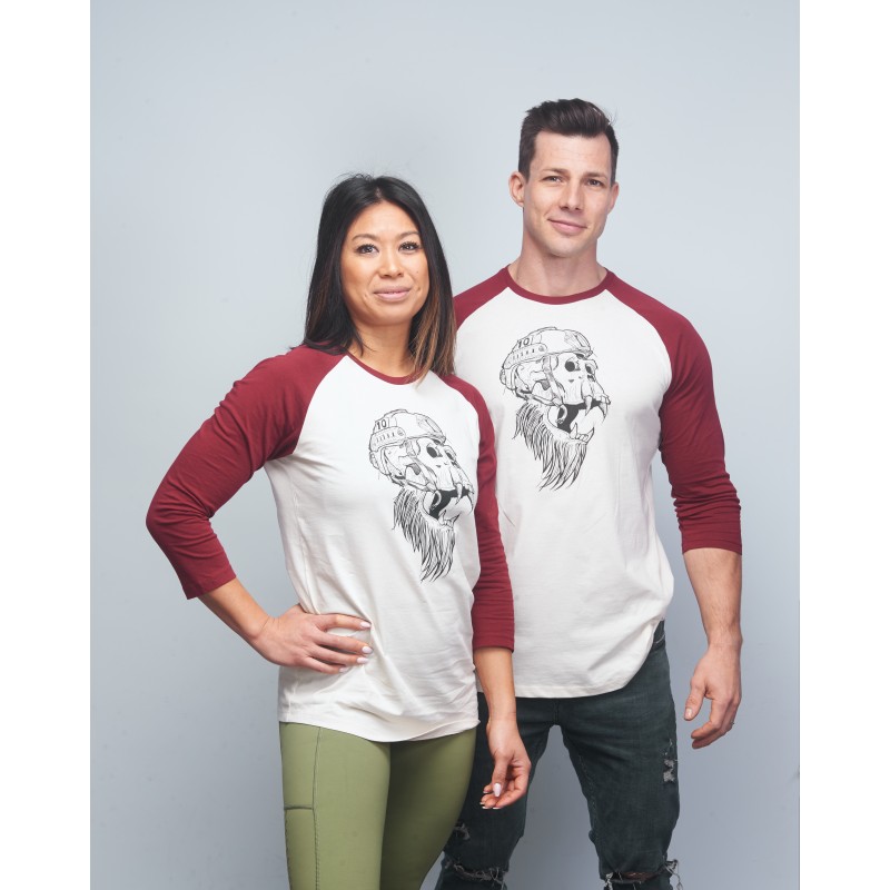 Baseball T-shirt unisexe bordeaux issu de la collaboration entre VERY BAD WOD et Will Lennart Tattoo modèle GORILLA OPS.