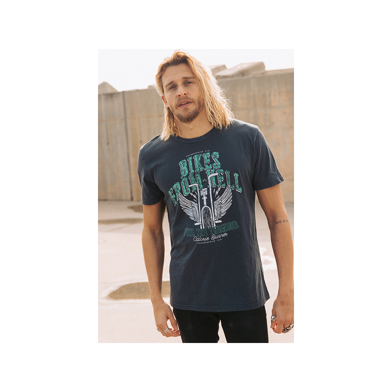Ce T-Shirt sport bleu BIKES FROM HELL - WINGS est idéal pour les pratiquant de disciplines sportives intensives telles que le Cross Training cherchant le confort et le style. Design stylé by THUNDERNOISE.