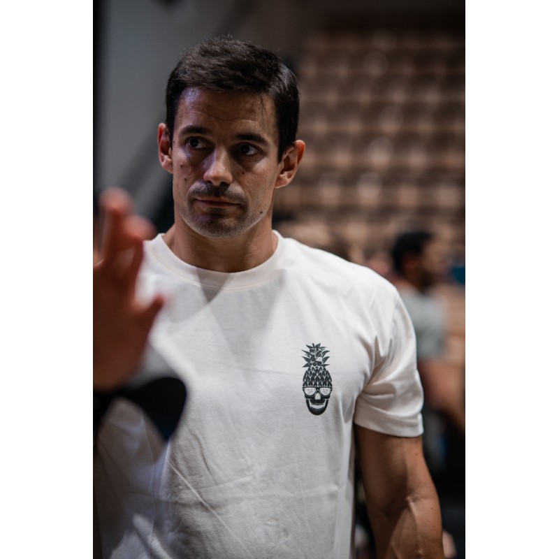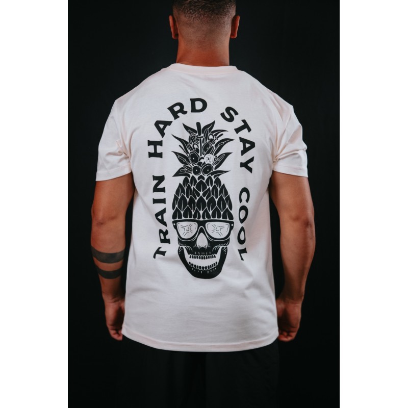 T-shirt unisexe de couleur blanc ivoire modèle TRAIN HARD STAY COOL.