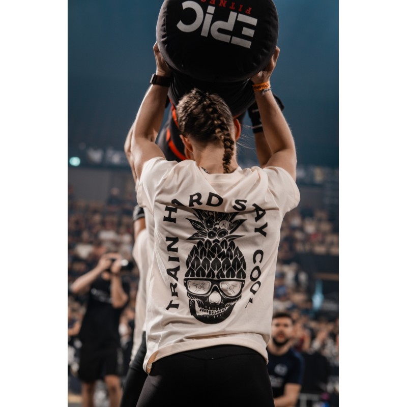 Ce T-Shirt unisexe blanc ivoire TRAIN HARD STAY COOL est idéal pour les pratiquant de disciplines sportives intensives telles que le Cross Training ou le CrossFit® cherchant le confort et le style. Design coloré by VERY BAD WOD.