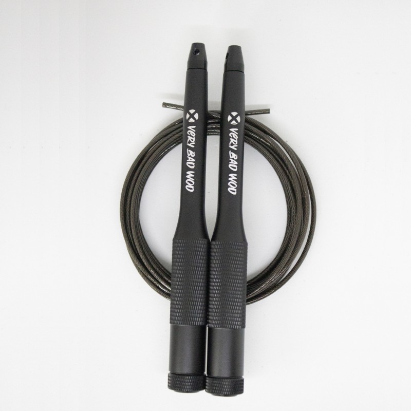 The Cross Training jump rope handles Velocity 2.0 by Very Bad Wod offer an ergonomic, lightweight, and ultra-smooth grip. Made from black aluminum with fast-spinning bearings, they're perfect for all levels. Ideal jump rope accessories for CrossFit® WODs or home workouts.